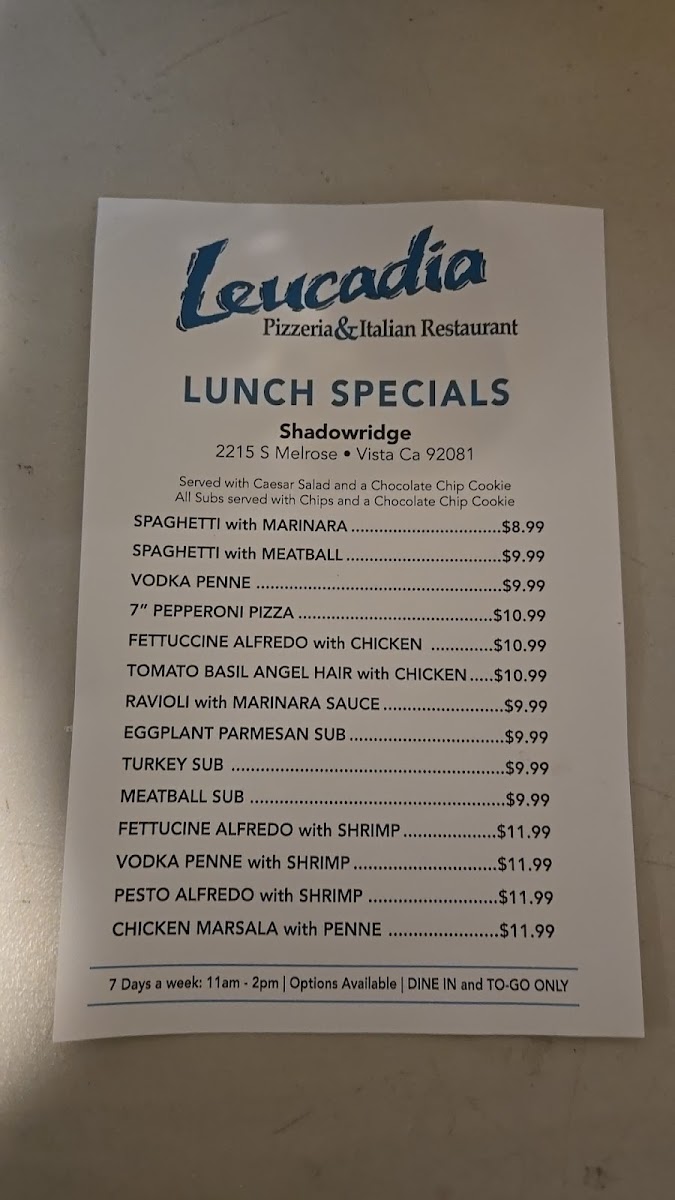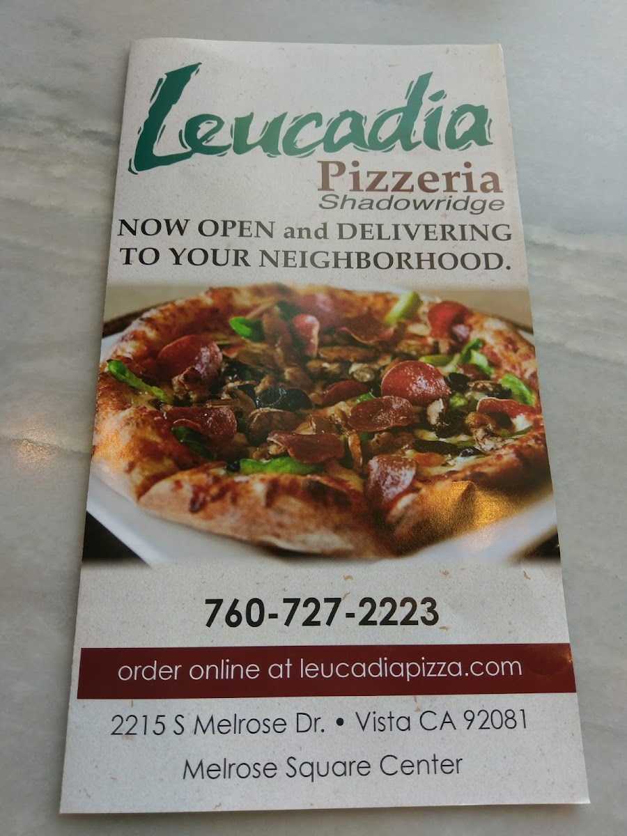 Leucadia Pizzeria Shadowridge Menu (Update 2025)