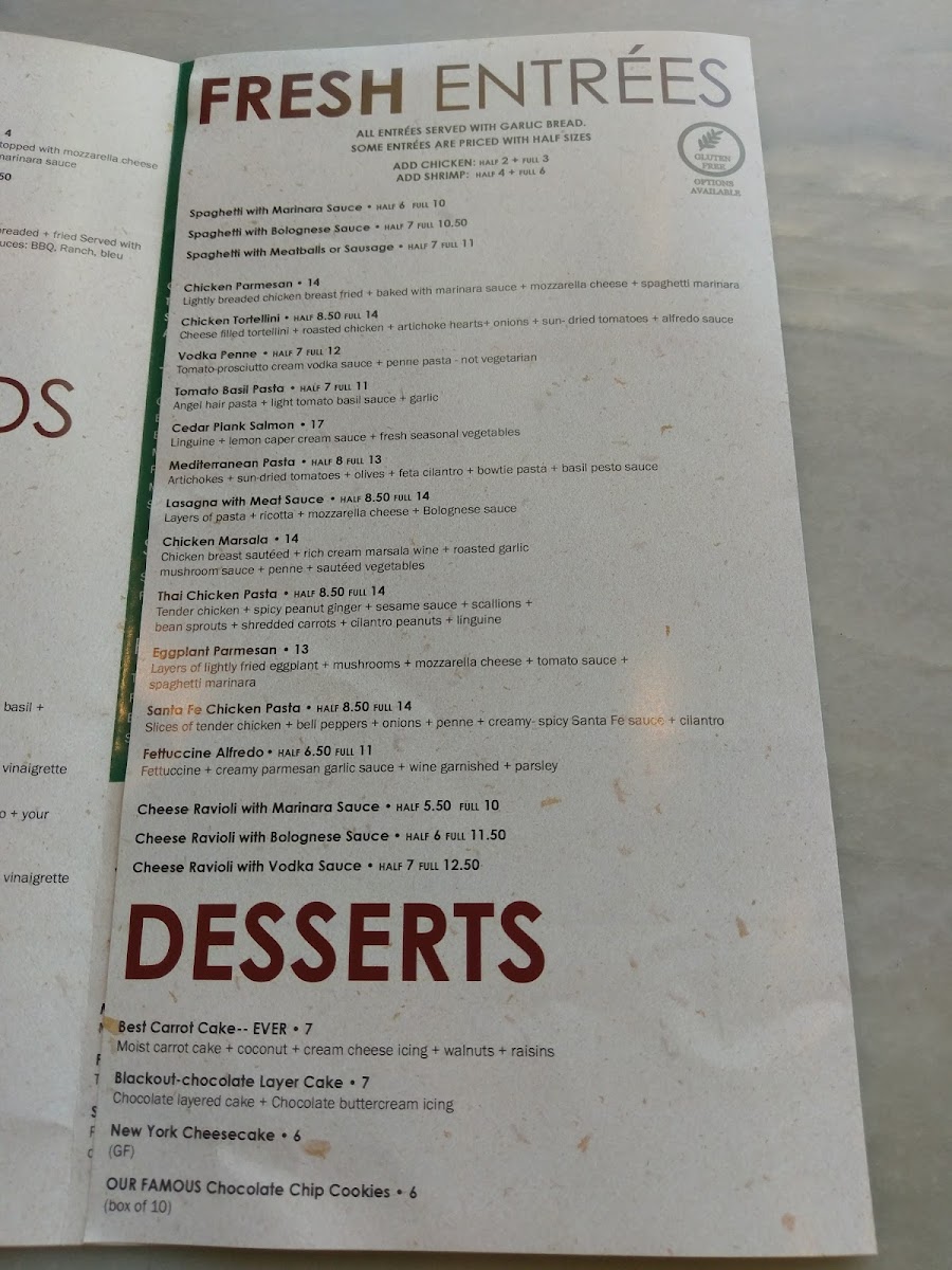 other pasta choices available are penne, angel hair, bow-tie, fettuccine and linguine and gluten free